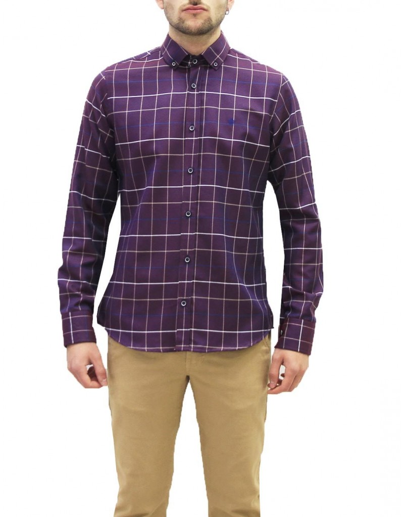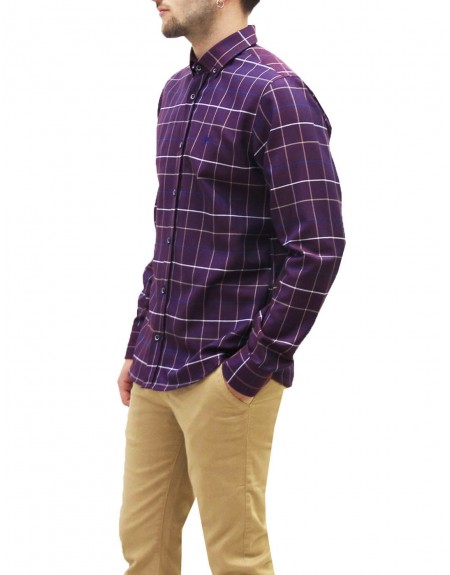 Camisa CITRICO. Color morado. De cuadros. Botón en cuello. Manga larga. Composición 65% Algodón 35% Poliéster.