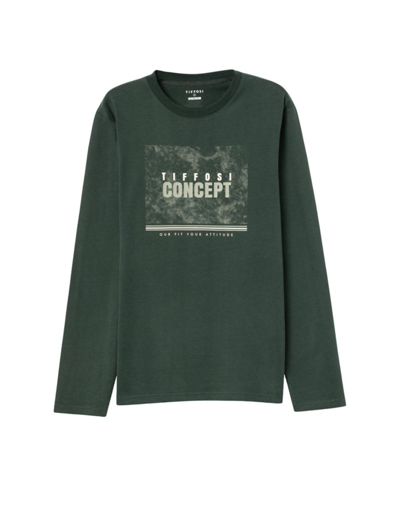 Camiseta Tiffosi. Manga larga. Cuello redondo. Con estampado frontal con logotipo de la marca. Color verde claro.