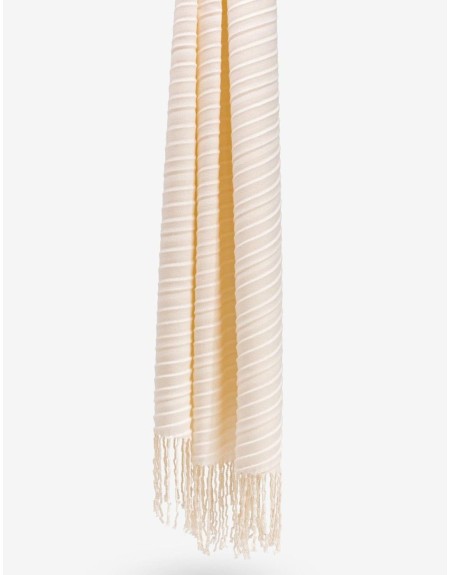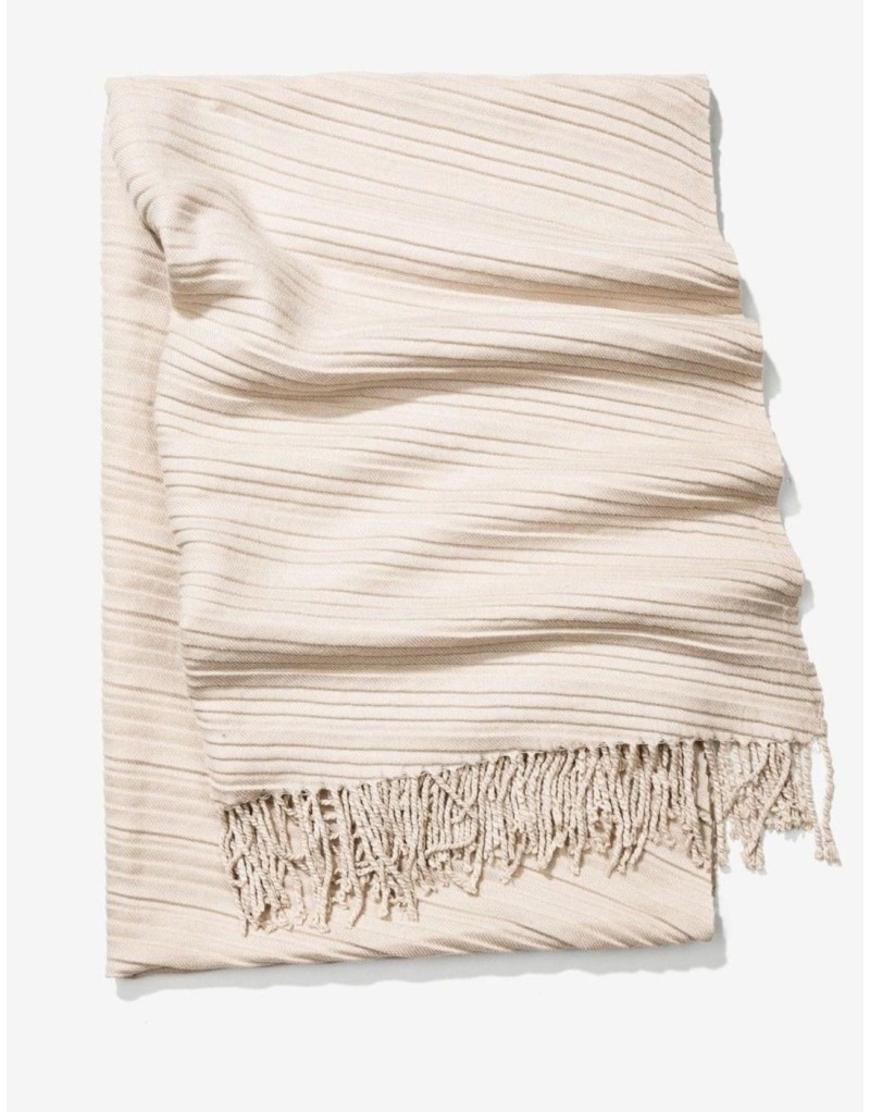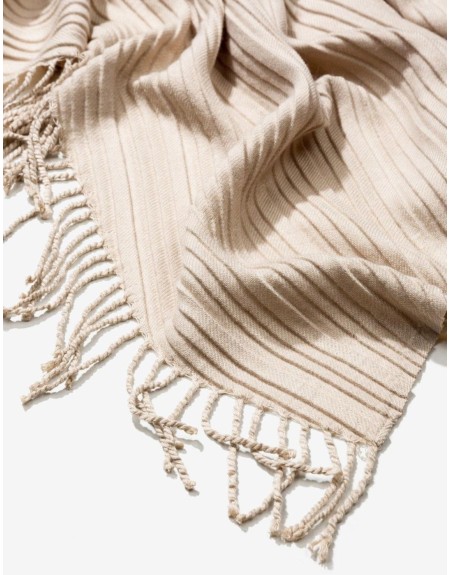 Bufanda Tiffosi, modelo de corte recto, con acanalado cruzado, terminación recta con flequillos. Disponible en color tostado.