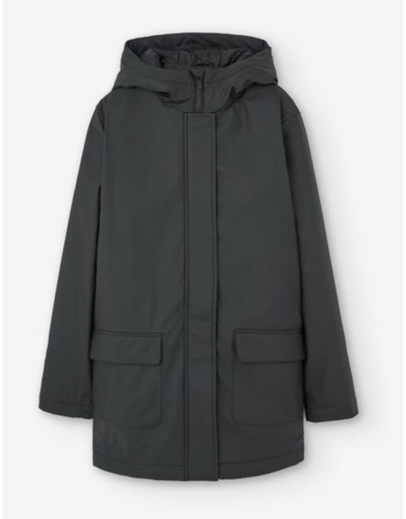 Chubasquero Losan con capucha, modelo de corte holgado, cremallera oculta por botones y cuello alto, con dos bolsillos laterales y forro. Disponible en color verde.