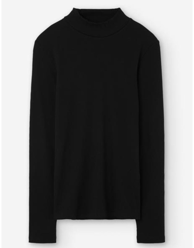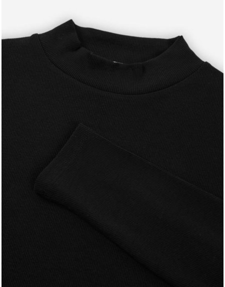 Camiseta acanalada, con cuello semicisne, corte regular, en negro básica.
