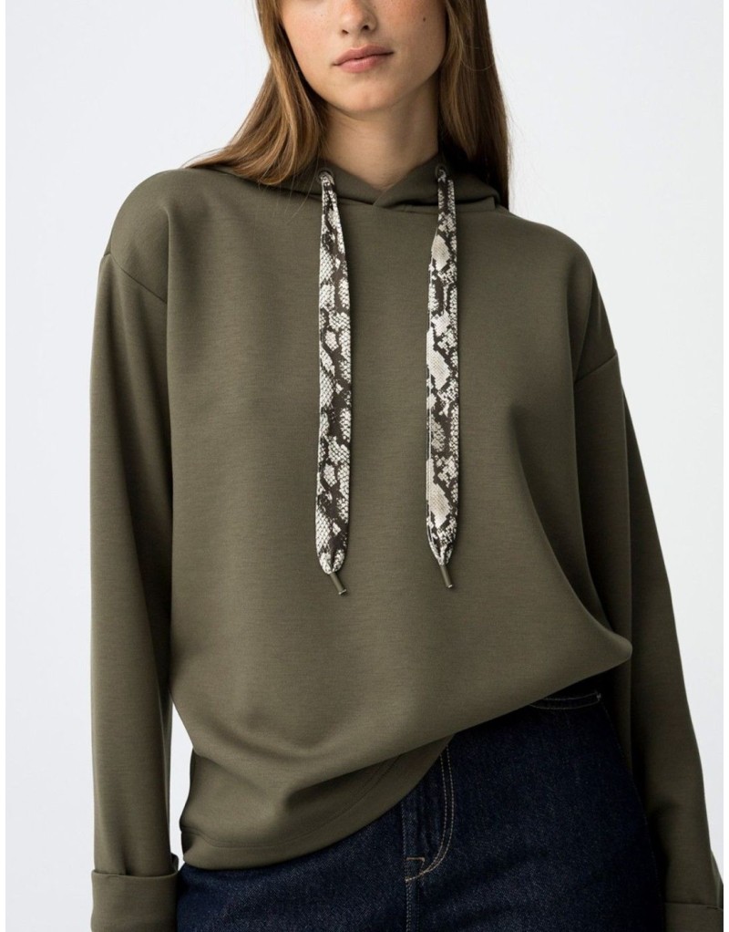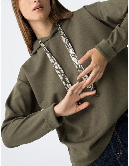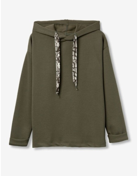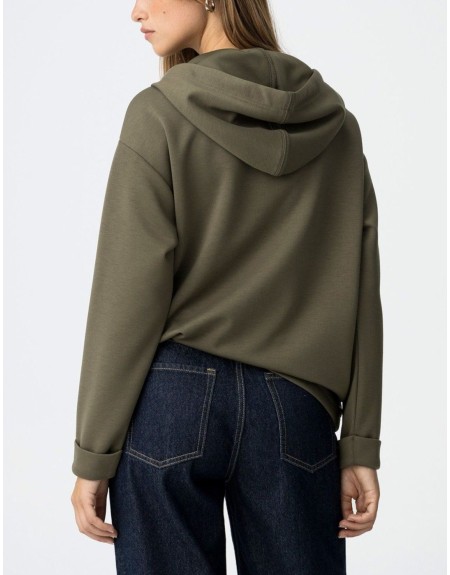 Sudadera con capucha de corte regular. Modelo con bajo recto y cordones para ajustar la capucha. Estampado liso disponible en color verde.